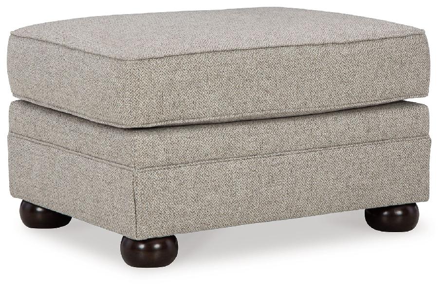 Inspired by the past but rooted firmly in the present, this ottoman complements your transitional seating area. Its versatile upholstery is delightfully detailed for a subtle herringbone effect. Designer touches like bun legs add traditional character. With this ottoman's reliable style and comfort, all you need to do is kick back and relax.